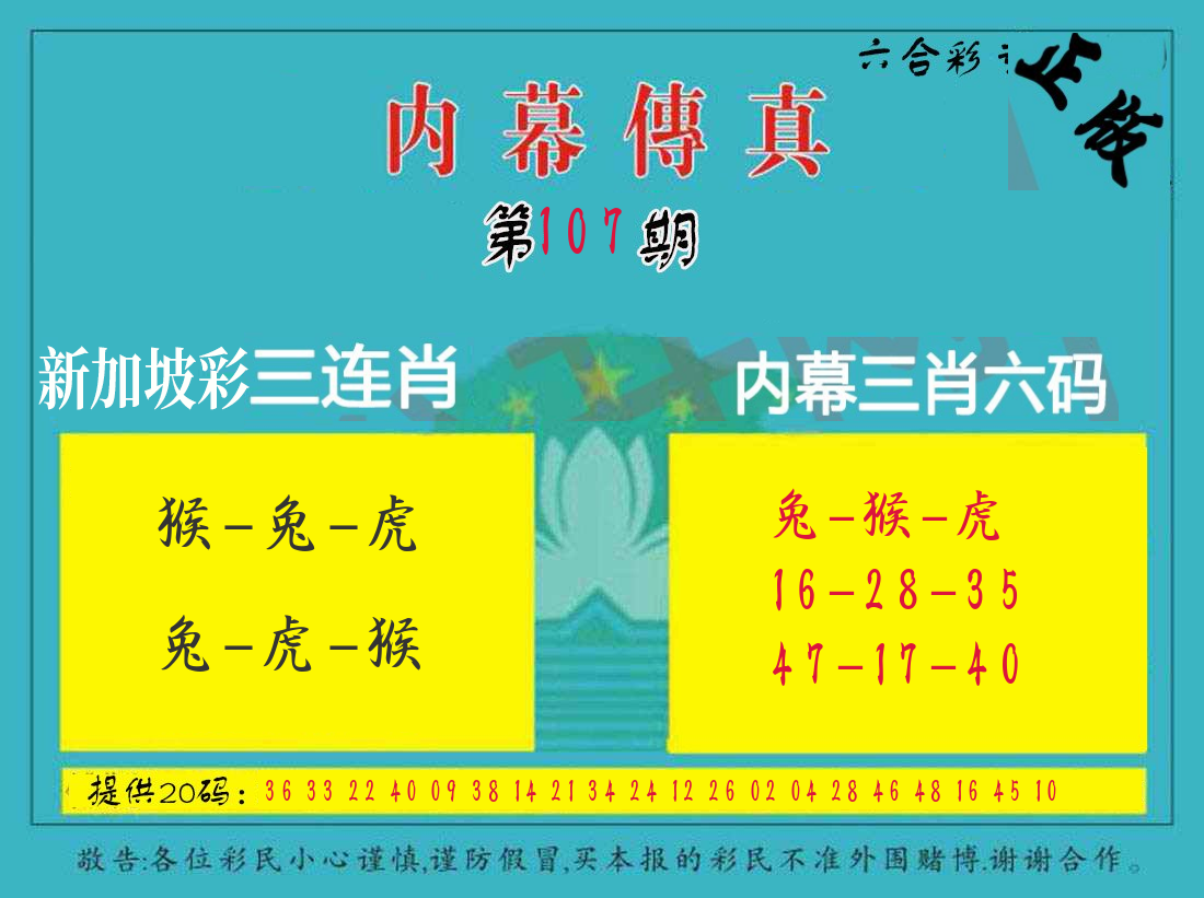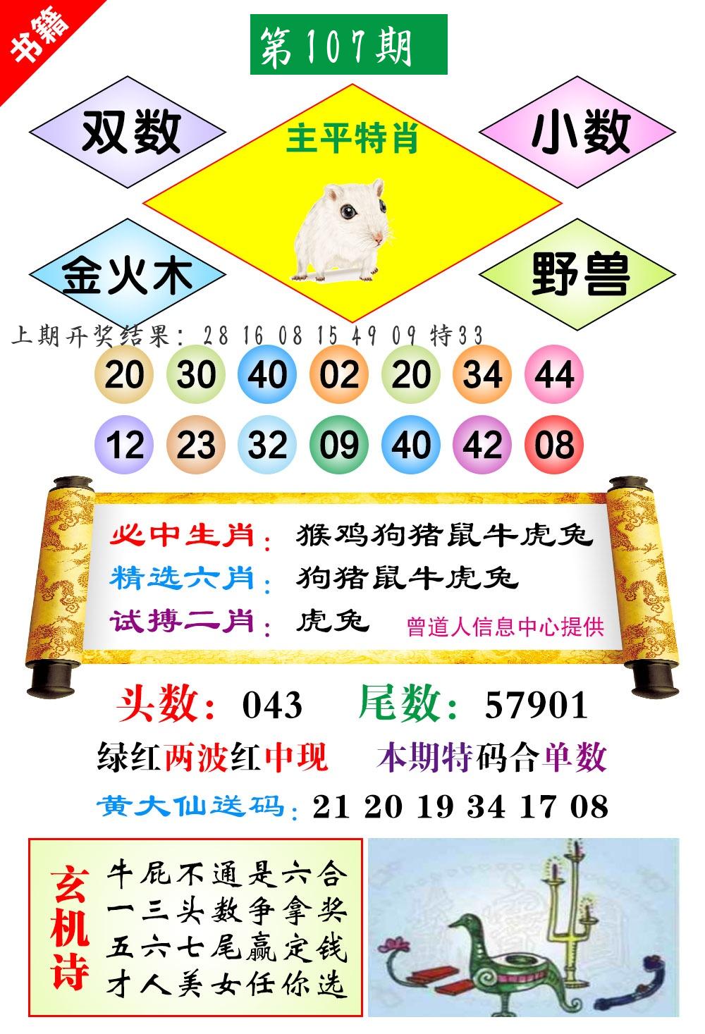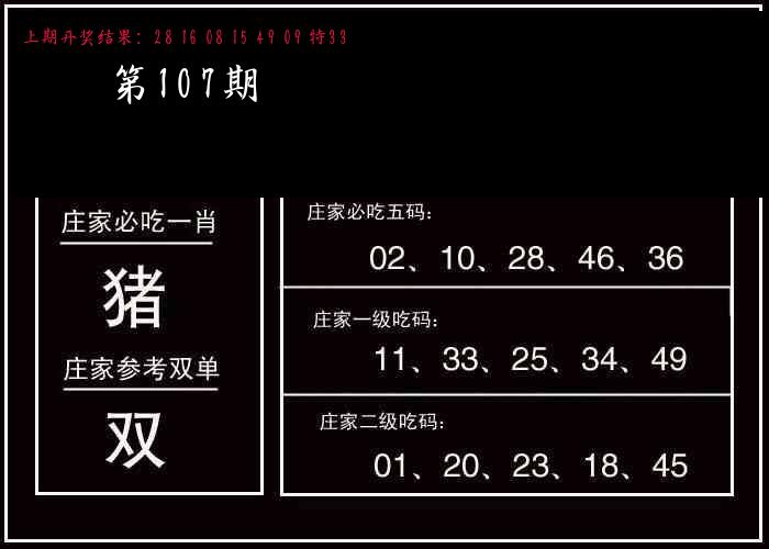 | 107期: | 必中三头【1头-0头-2头】 必中七尾【2-0-3-5-8-6-4】 | 开: ?00 |