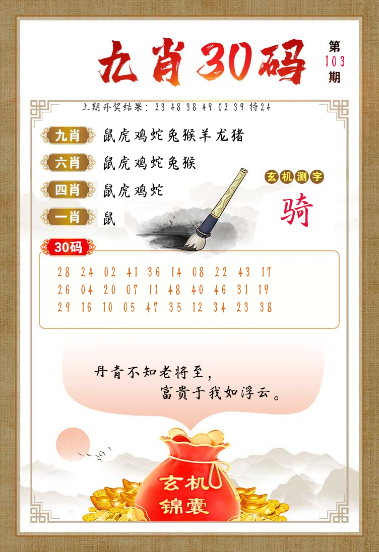| 103期: | 必中三头【0头-2头-1头】 必中七尾【3-4-1-0-6-5-8】 | 开: 03龙 |