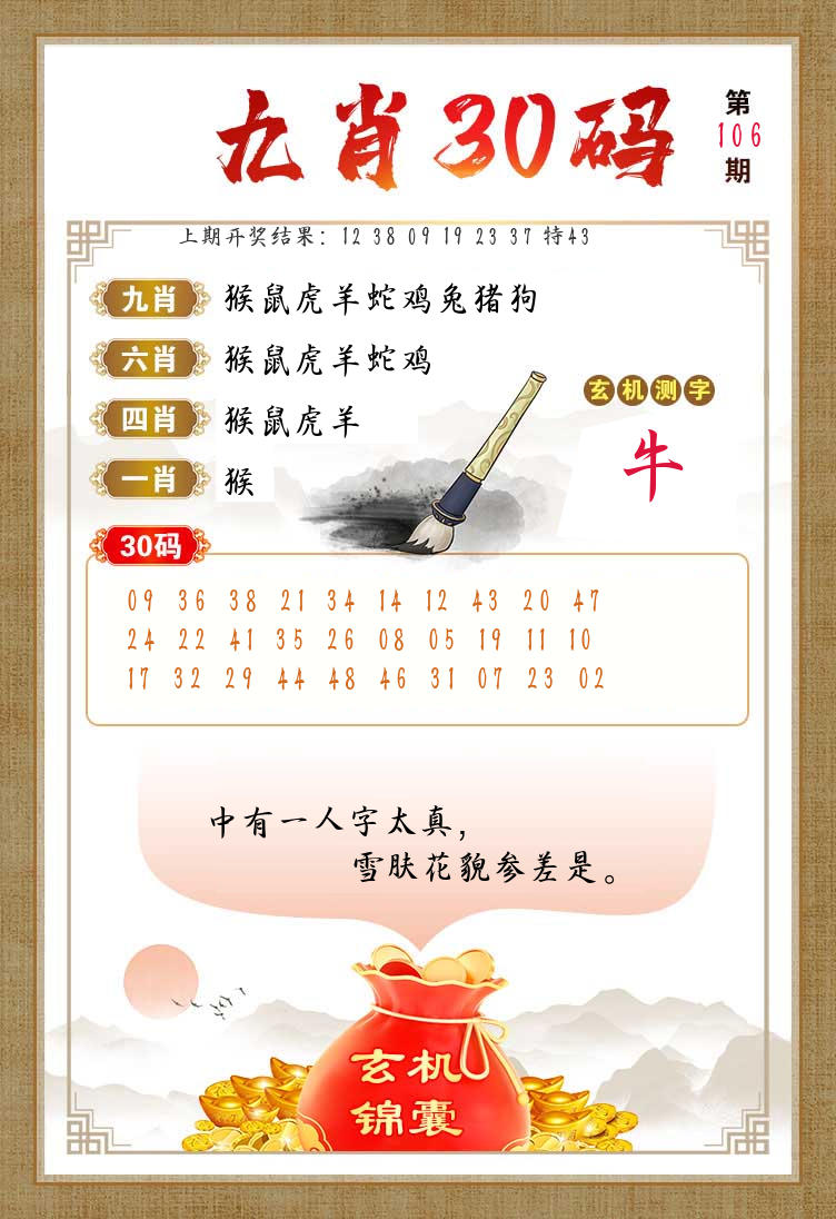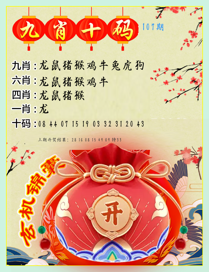 | 106期: | 必中三头【2头-4头-3头】 必中七尾【1-5-7-8-2-0-4】 | 开: 33狗 |