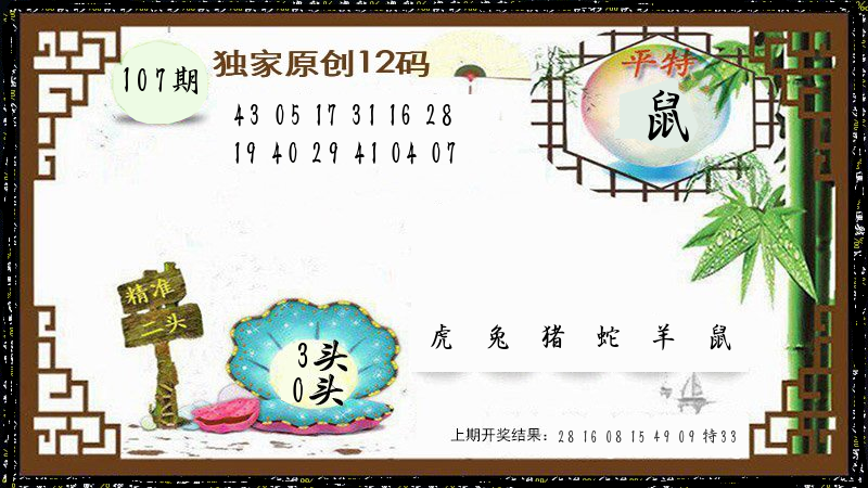 | 105期: | 必中三头【0头-1头-4头】 必中七尾【2-8-7-4-5-6-3】 | 开: 43鼠 |