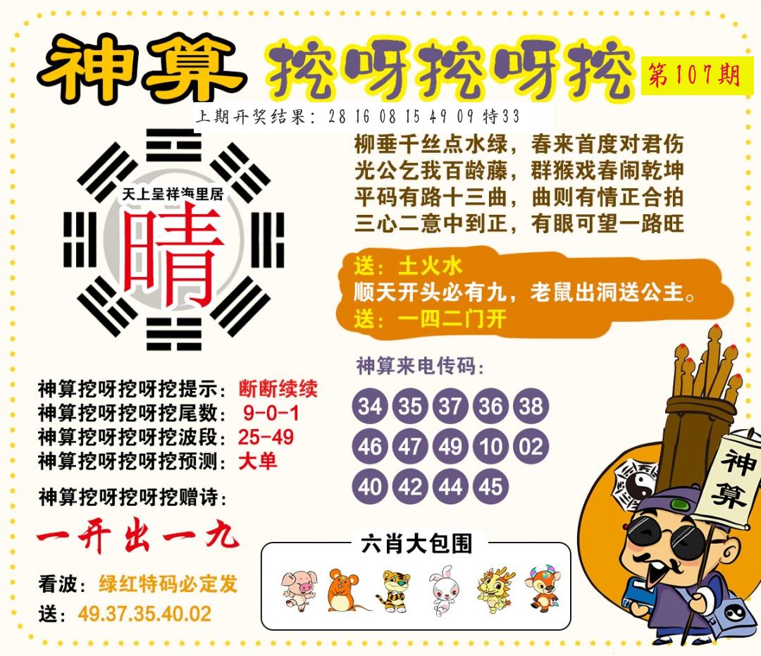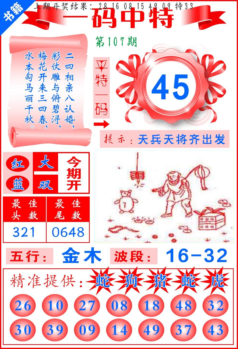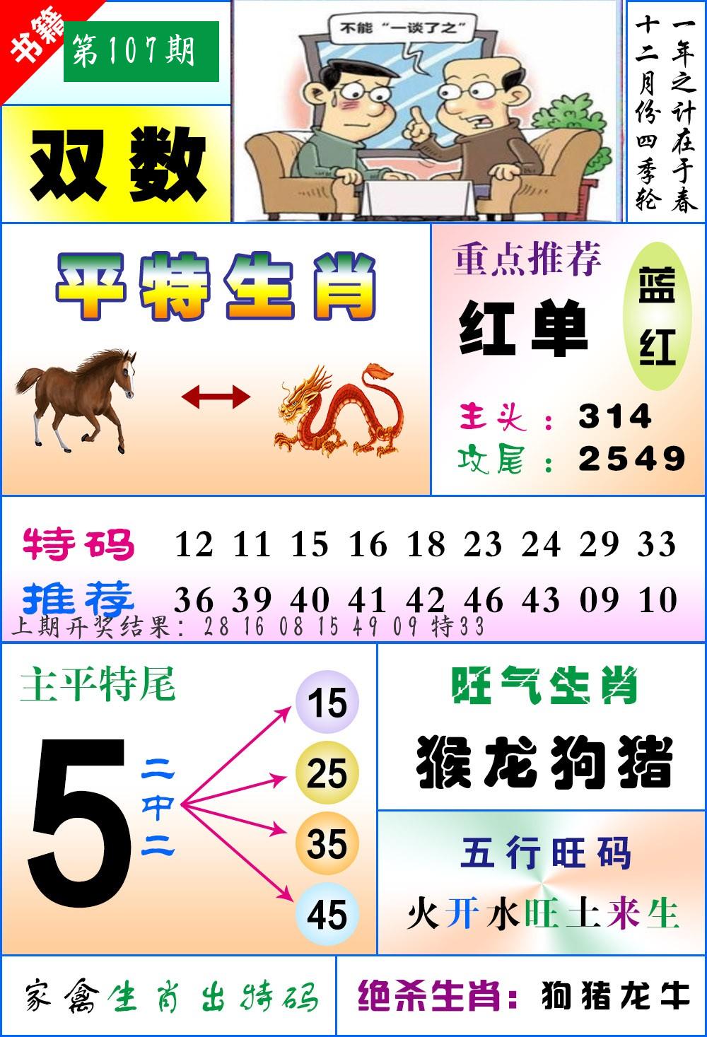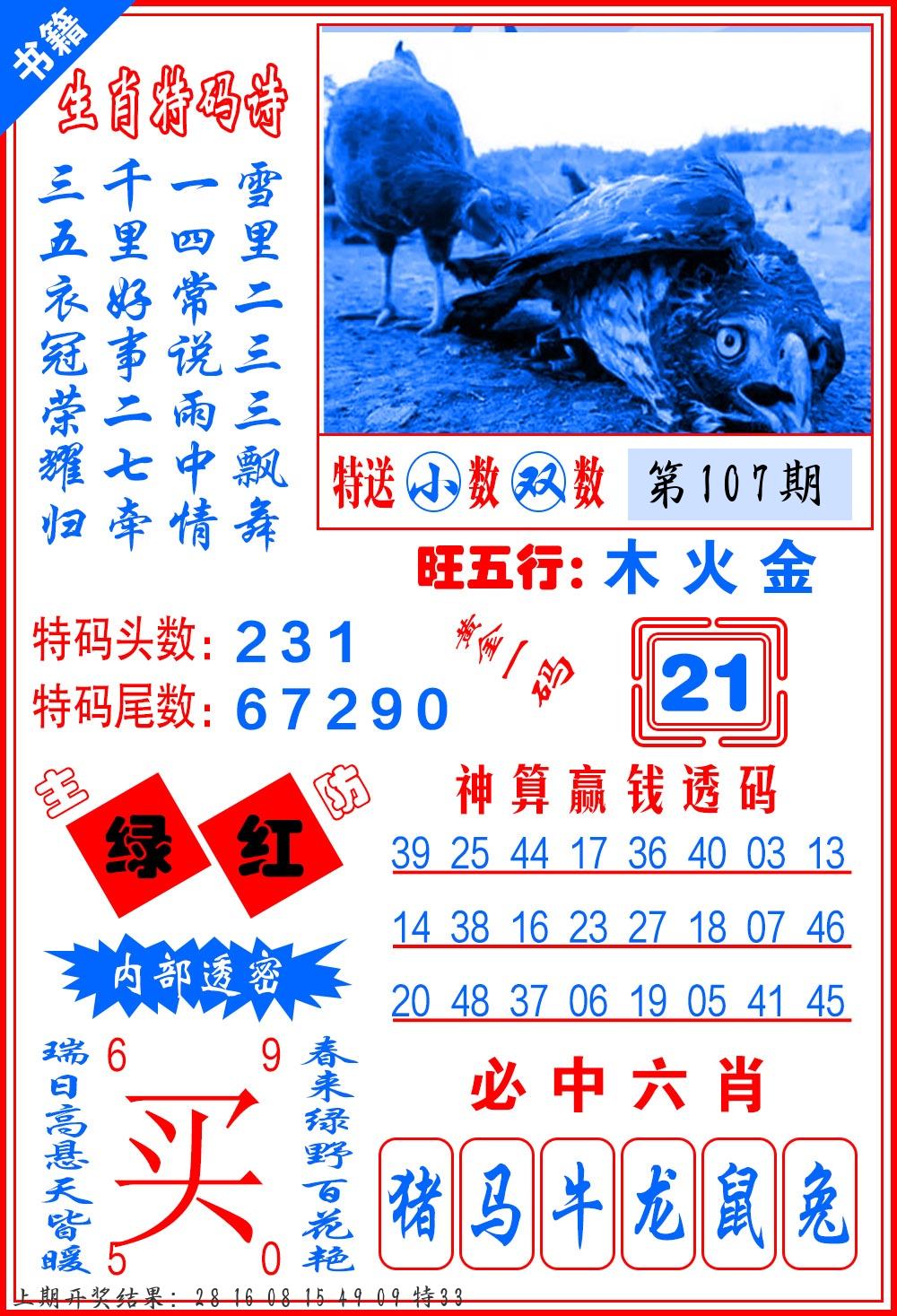 | 107期: | 民间高手【主6码协.策6码】 主攻:02 10 15 17 18 20 协防:22 23 24 26 27 28 策防: | |