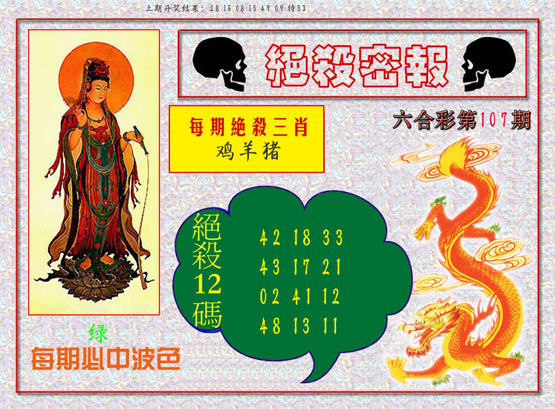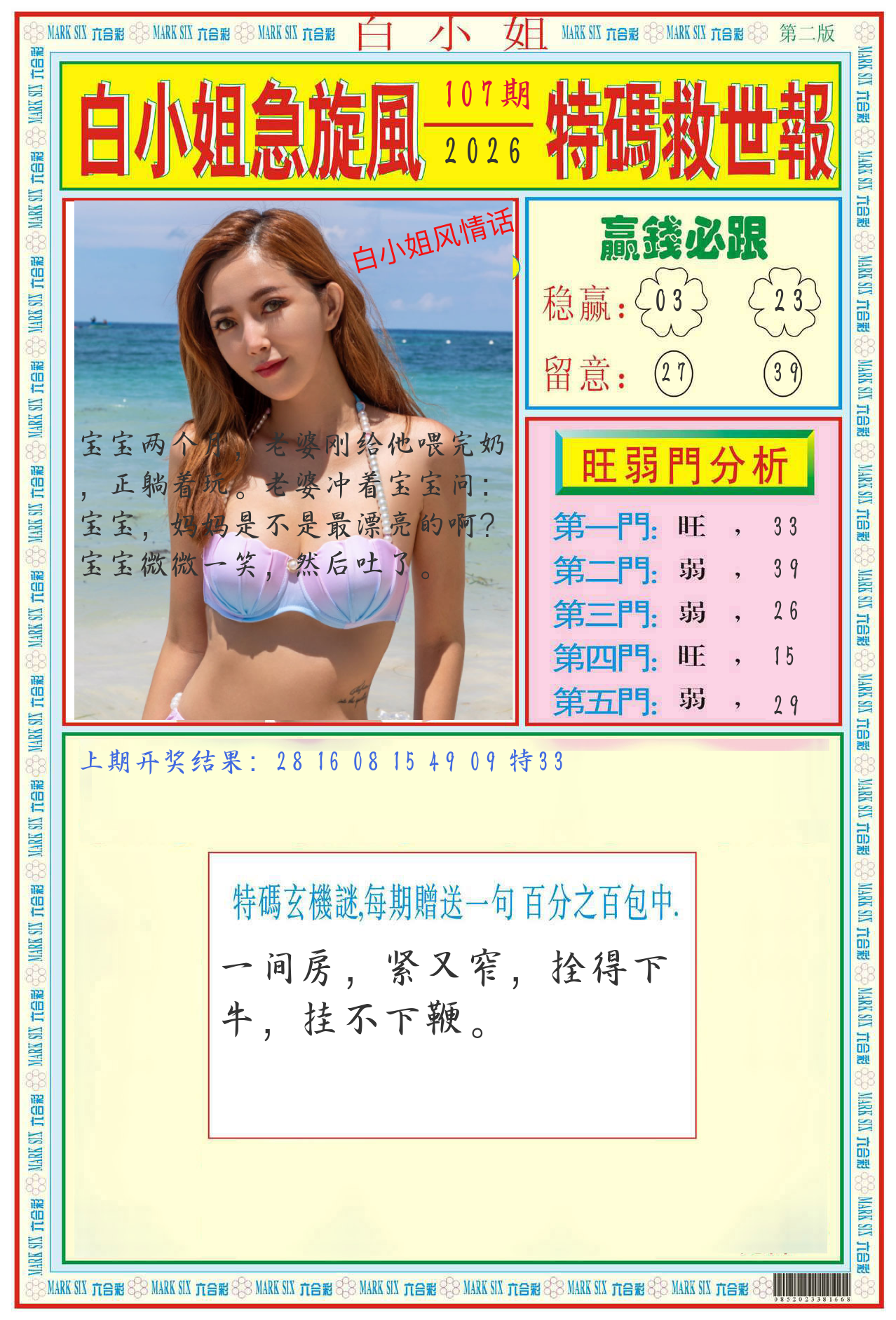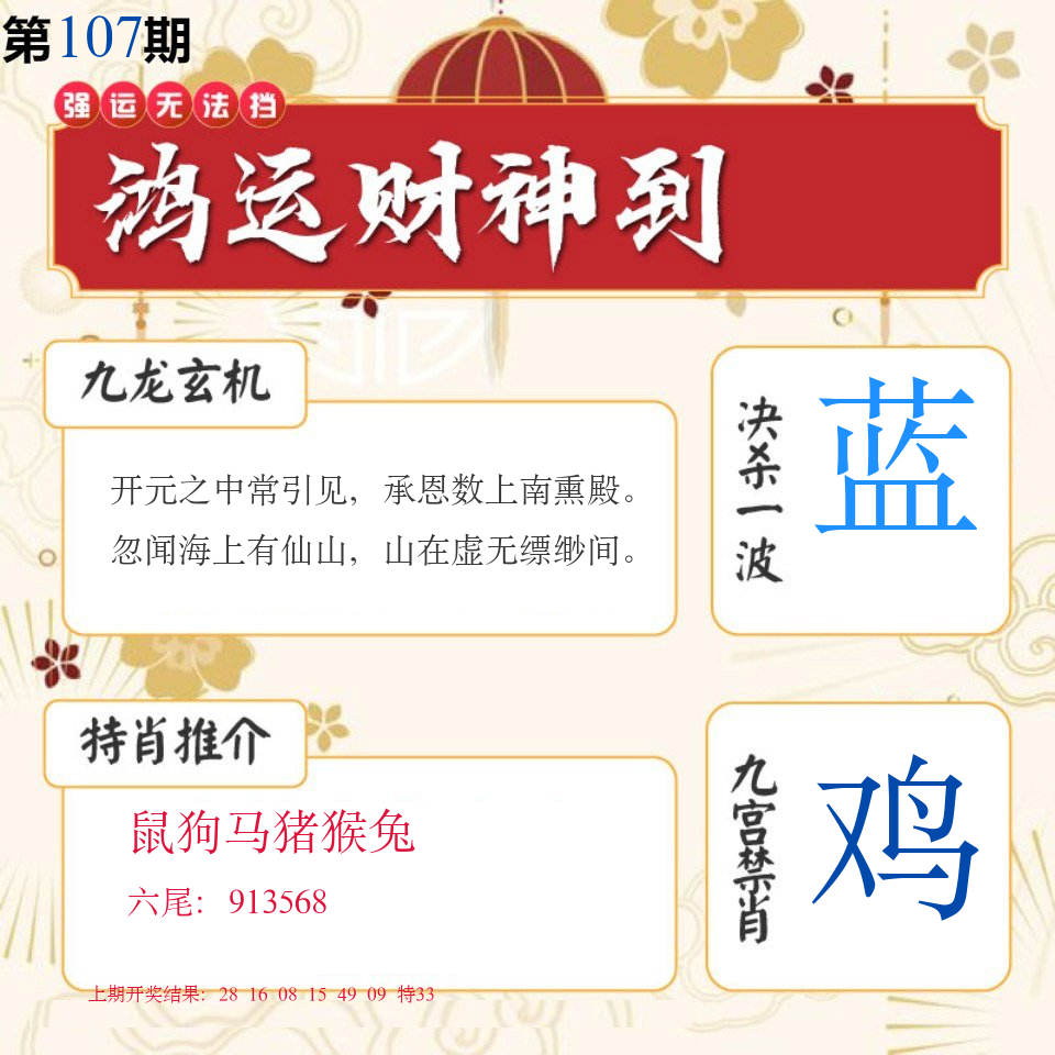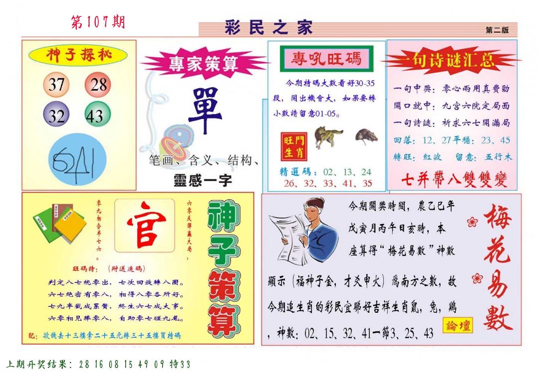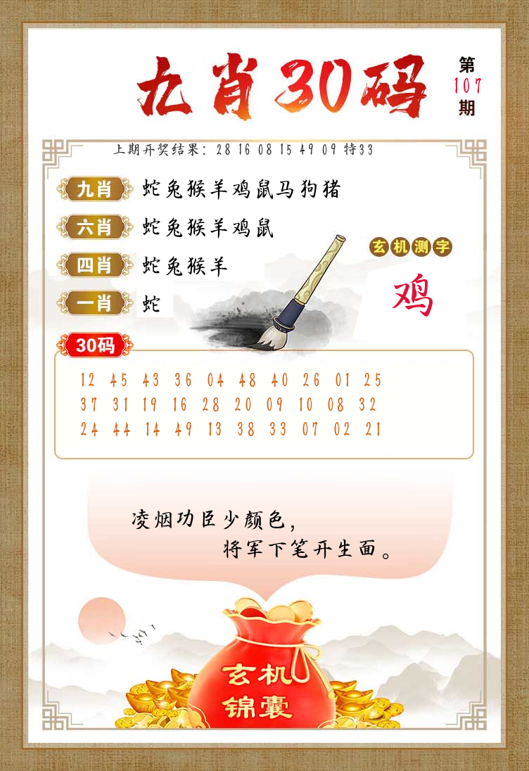 | 107期: | 民间高手【主6码协.策6码】 主攻:02 10 15 17 18 20 协防:22 23 24 26 27 28 策防: | |